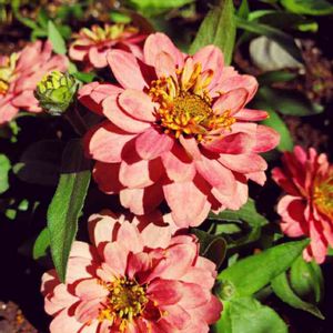 庭のジニア🌸 雨風に痛みながらも まだまだ咲いてます🎵