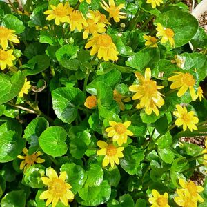 こんにちは👋😃 ☝️…ヒメリュウキンカ(姫立金花)~肥料も水のお世話もなし、花も葉っぱもピカピカで毎年、今頃勝手にあっちこっちから出てきます~🤭 花言葉は「会える喜び」「あなたに会える幸せ」💛 暖かいです~☀️ 今日も元気で➰ 👋😃