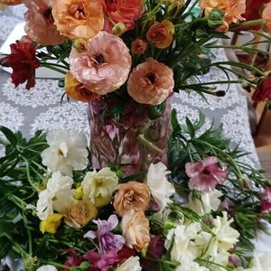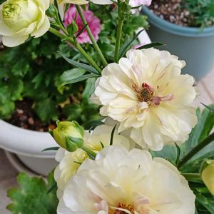 おはようございます☂️ ☝️…ラナンキュラス、ラックス~ 切り花で楽しみます~多いので姉にも💐 夫がリビングへ来たので「綺麗でしょう~」と言ったら…… 「どこからもらったの('_'?)」と🤪 毎朝、玄関から出ていくのに~🙄 まっ…買ってるのも気づかない、て事で😁👍 今日も元気で~ (^|0|^)