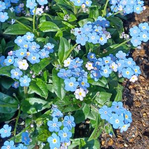 おはようございます🙋♀️~霧が濃い朝でした…これから☂️予報('_'?) ☝️…ミオマルク~大きな花の忘れな草だそうです~🤗 花壇で冬越し、枯れた葉っぱの下から新芽が出て広がるのが早かったです🤭~ 今日も元気で~ (^|0|^)