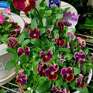 こんにちは~☂️☁️ ☝️…ビオラ&チューリップ、あんみつ~ 同じ色のチュウリップが咲きました~お得セット🤗 あんみつ、てどっちの名前('_'?) 桜が満開の頃になると強風~🌸 今日も元気で~ (^|0|^)