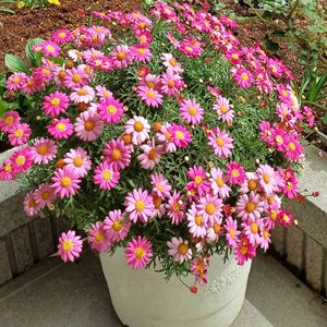 こんにちは👋😃 雨上がりの☁️ ☝️…去年のマーガレットが大きな鉢でやっと満開~屋根は有るけど外で寒さを我慢~🤗 今日も元気で~ (^|0|^)