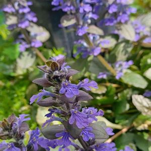 こんにちは~👋😃 ☝️…アジュガ~ 去年から冬を乗り越え増えました~🤗 冬越しには、枯れた葉は取らない方が良いですね🙄