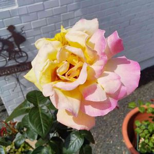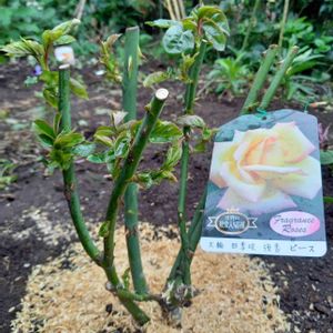 昨年末に我が家の庭に仲間入りした薔薇「ピース」🌹 昨日はつぼみだったのに、暑いので開ききってしまいました😅 長年欲しいなと思いながら、中々ピンとくる苗に出会わず、昨年末にHCでお買い得価格ながら、立派な茎を持つピースに出会い、ウチに来る?とHCで薔薇とこっそり会話しながら、一緒にオードリーヘップバーンもお持ち帰り︎💕︎💕 バラの種類がどんどん増えていきます😅 挿木もほぼ成功しているので、置き場をどうしましょうか( ̄▽ ̄;)