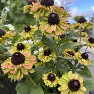 ルドベキア アーバンサファリ フォレストグリーン すぐにラベルを取ってしまうのでどれが誰か分からなくなってしまうのだけれど この子は間違いなくフォレストグリーン 昨年スーパーの花コーナーからレスキューした子🌱 立派になってお世話係は嬉しいよ♪ 奥のオレンジさんは誰ちゃんかわからないルドベキア アーバンサファリの誰かだと思ってたんだけど…わからない💧 アンティークなオレンジ色がかわいいです