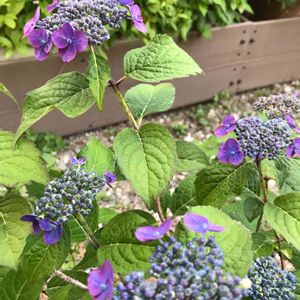 夕方のベランダの様子🌇 ホヤカルノーササクララン🌸 蕾はろう細工のようです 🌸 ヤマアジサイ豊前の紺色💙咲いてました。💦 見逃すところでした。 装飾花が出ていません(´・ω・`)❓