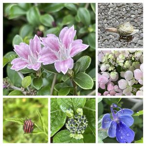 今日は雨降りにドライブ🚗³₃ カタツムリや変わった柄のカメムシに出会いました。🐌😊 ベランダはブルーウイングも咲き始めました。💙