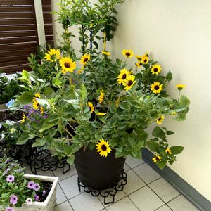 🌻ヒマワリ サンビリーバブル🌻 9月になってから花数が増えてきました💓 💜オキザリス トライアングラリス 深紫色のリーフが美しい✨✨ 💜ユーパトリューム まだまだ元気✨ 今日はお彼岸、京都へお墓参りに行ってきます🪦🙏