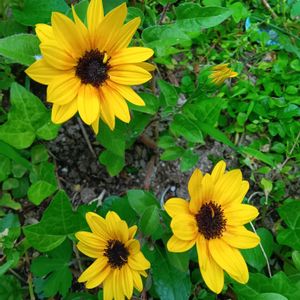 今日のお花✨ 🌻ヒマワリ🌻 1枚目 サンビリーバブル 次々と開花 謳い文句 1000輪咲く⁉️ 2枚目 🧡💛ヘリオプシス💛🧡 ブリーディングハーツ 宿根草はいいねぇ〜💕 赤からオレンジイエローに変化していきます🧡💛 リーフは銅葉色でしたがグリーンへ🤎💚 茎は黒軸です🤎 今日は昼頃に雷雨⚡️☔️ 🚿水やり助かりました❣️