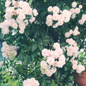 ポールズヒマラヤンムスク 挿し木苗 命受け継いでくれ咲いてくれた〜☆*:.。. o(≧▽≦)o .。.:*☆ 本当に小さなお花がフワフワ夢の世界、散り方が桜🌸のようで素敵。 かなり長く伸び成長しこれから毎年・・と思ってきた数年前。 根元から萎れ始めた。 ゆっくり調べる余裕もなく横目で見るのが辛かった(鉄砲虫?) でも枝先はまだまだ元気! 日課のような挿し木をしてみよう。 あれから数年、初めて咲いた(๑˃̵ᴗ˂̵) ネットで色々なバラを沢山育てた後、ほぼポールズヒマラヤンムスク 3本だけにした方がいる。 色々育て気が済んだら?許容範囲超えたら?泣く泣く残すなら?これをメインに・・ わかる気がします。