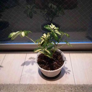 窓辺には斑のシェフレラ ちなみに前この鉢に植えてたユーカリポボラスは枯れてしまいました.
