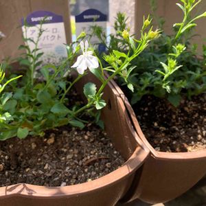 アズーロの寄せ植えとして作ったけれど、アズーロの咲きが遅くて、合わせたビデンスの黄色の方が目立っています😅 3週間くらいたって、やっとアズーロが咲き出しました💧 アズーロの色はスカイブルーで、これが横に広がり蝶のように咲くのが楽しみです✨