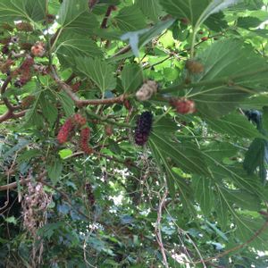 20200517野川畔にて。桑の木が群生。実が沢山なっていました。色の濃い実を食べてみると、懐かしい、甘酸っぱい味がしました。