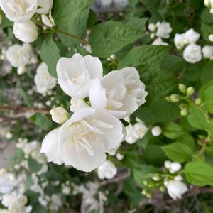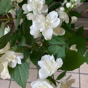 八重咲きのバイカウツギ ぱっと見、白いバラのような美しいお花✨ 優しい香りも香ってます😊