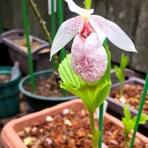 春にひと鉢お迎えし 斑入が緑🍀に…😊💦 葉先をカットし挿してからひと月… 初めてお花を咲かせました🌸✨ ☔️で天気が悪かったせいか これ以上の開花は見られずに萎んじゃいました😆💦 少しだけ葉に斑入が戻ってきたような~🎶