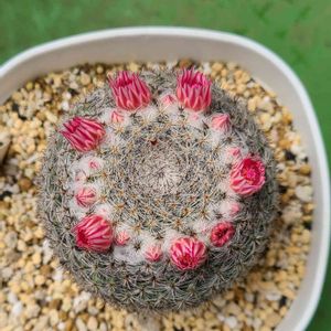 恋山彦 サボテンマミラリア ぐるりと咲きました。