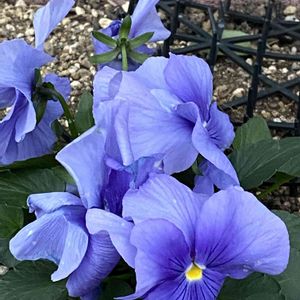 おはようございます コミュニティ花壇に珍しいビオラが よく見ると2株がくっついていました 寒いからこのほうがあったかいよね😙💛🤍