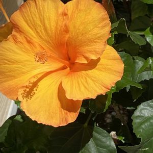 おはようございます 玄関前に飾られた ハイビスカス 綺麗なオレンジ🧡 でした