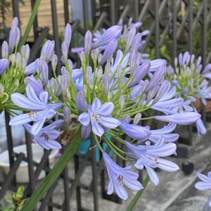 おはようございます 散歩道から見えるアガパンサス そして紫陽花 熱帯低気圧のため雨がひどくなってきました😅💜💙🤍