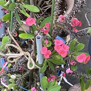 おはようございます 庭にハナキリンが置かれていました 外で元気そうです 40センチあって花がいっぱい❤️