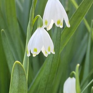 おはようございます いいお天気になりました 散歩であちらこちらに スノーフレークの株が目につきます 下向きのお花がかわいい🤍💚