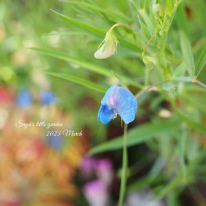 昨年採取した種からのスイートピーꕤアズレウスの小さなお花が咲きました♪ この色合い…そして美しい透明感❤︎ なんて素敵なんでしょ(ღ˘⌣˘)❤︎