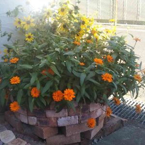 2ポット植えたジニア 周りの植物を飲み込んで拡大中😅 良いのか悪いのか?🤔