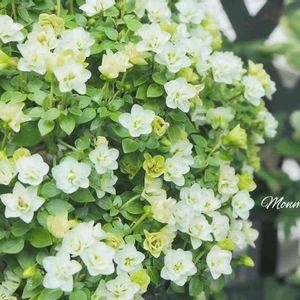 6/30(日)① エキザカム八重咲き 一重咲きも八重咲きも紫色は見たことがありますが、薄緑に見える白は初めて見ました‼ リンドウ科 エキザカム属 和名ベニヒメリンドウ 英名ペルシアンバイオレット インド洋ソコトラ島原産 八重咲きはオシベが変化して花びらになったので種はできませんが、差し芽で増やすそうです。