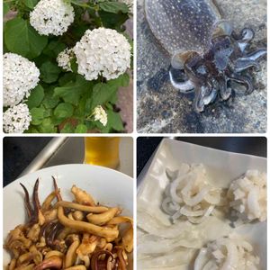 土曜日 釣りは?ってことで アナベル咲いてましたぁ 見逃してた😁 そして釣りの🎣釣果は イカ🦑7杯 シリヤケイカねー 夜はイカ三昧 刺身に生姜醤油で👆 ビール🍺美味い( ˘ω˘ ) 薔薇🌹もちょこちょこ咲いてますが 忙しい日々なんで picしてませーん💦