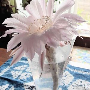今日咲いたと思われるサボテンの花が折れていたので救済。 お水に入れたらどうにか開いたままです。 一日花なので部屋の中で楽しみます。 息子は人工呼吸器一旦外れましたが又今日から付けられたようです。 昨日リモート面会しましたが私の声にニコッとしてくれましたがまだ話せる状態ではありませんでした。 焦らずゆっくり見守りたいと思います。長男は順調に回復しています。