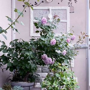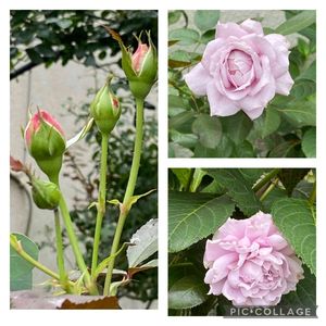 おはようございます☻* 昨日の朝、雨が上がって庭に出ると、 ノヴァーリス🌹 が美しく咲いていました✨ ピンク色に変化した花も、葉っぱも綺麗🍃 雨の中、こんなに綺麗に開いてくれていた んだと感動🥺し、撮影🤳✨ 切り花にしてお部屋に飾りました。 その後はまた雨☔️ 今日も今は止んでるけど、午後はまた雨☔️ 夏剪定も思うように捗りません💧