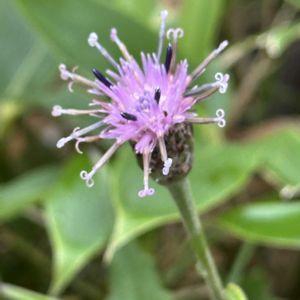 タカネヒゴタイ (高嶺平江帯) キク科トウヒレン属 南アルプスや八ヶ岳の高山帯や亜高山帯の草地、林縁などに生える 淡紅紫色の筒状花は少しアザミに似ている 総苞は暗紫褐色をしており、産毛が生え、先が尾状に長く伸びるのが特徴とのこと 2年前に見たタカネヒゴダイは八ヶ岳(天狗岳)だったのですが、ここは長野と群馬県にまたがる四阿山⁈ 8月下旬🤔 先を急いでいたのでまたちゃんと撮っていないのですが、 後ろに葉が写っています。 基部は卵形で先は尖り、縁には粗い鋸歯がある。 合っているか分かりません〜😮💨 8月下旬 日本百名山の四阿山にて 山の紹介でよく登山ガイド本に載る景色⛰️😊
