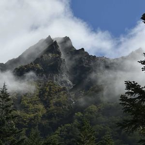 雲の間から横岳 2,830 m シラタマノキも岩肌に🤍 標高が高いところにあるコケモモは強風や雪、雨に耐えるため葉っぱも実もとても小さい