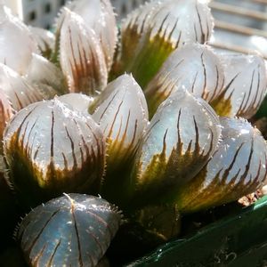 ●ススキノキ科 ツルボラン亜科 ●ハオルチア属 ●ベヌスタ×オブツーサ(交配種)😻😻 雨が止んで、今日は晴れて良い天気でした。😆😄😆 晴れてると、ビニール温室も温かくていい感じ。🤭😋