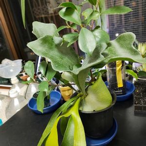 昨日モニターで届いたザミオクルカス ザミフォーリア レイヴンを植え付けました。鉢は6号表記だけど14cm角で土は1.4ℓ👌 ポットがパンパンだったのでハサミでポットを切って出して見ると根回りしてます💦大きな透明のじゃがいも🥔みたいなのが数個😮これは球根なのかな? 根をほぐしてる途中でチビが1本折っちゃったので水挿しにしました、発根しますように🙏