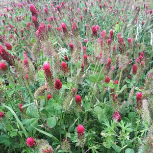 💜スカビオサ ①(西洋松虫草) 〈マツムシソウ科, 属〉 ②ストロベリーキャンドル🍓 (クリムゾンクローバー)☘️ ③④矢車菊 ⑤スパニッシュデージー(源兵小菊) ♡可愛い可憐なお花の花盛りです♪