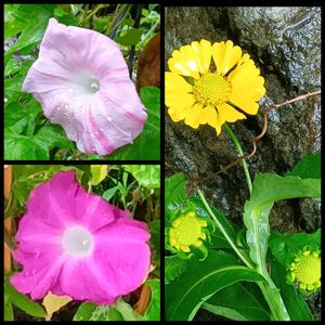 アサガオ 昨日の風で花びらが 綺麗に開いてないです。 ヘレニューム 葉だけが栄えカット✂🍀後に咲いてきました。 おはようございます m(_ _)m 今日は☀