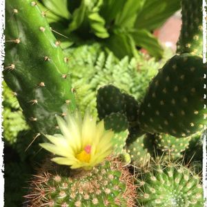 今日は雨ですがサボテンが8分咲きです🌼 数ヶ月前に寄せ植えしたんですが、急成長でギュウギュウになっています🙈 まだ大丈夫かな…💦