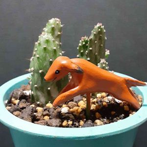 昨日衝動買いした100均のサボテンと、先日自作した今は亡き愛犬モデルのガーデンピックを組み合わせてみました。