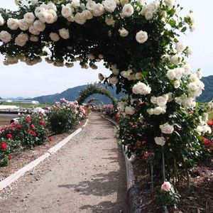 先週、いくとぴあ食花、春のばらまつりへ行って来ました🌹⸜(* ॑꒳ ॑* )⸝⋆* 1枚目 ピンクのアーチ(*´˘`*)❤︎ 2枚目 全長50mのバラの回廊 3枚目 回廊の裏側 4枚目 ペンステモン 5枚目 もふもふコキアが沢山