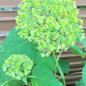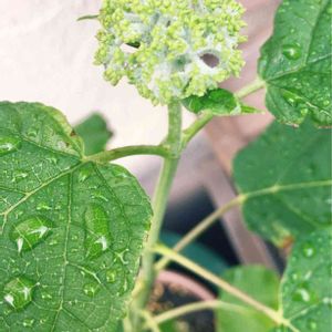アジサイは雨の日がよく似合う☔️✨ 挿し木のアナベル まだ咲く前のグリーンの姿もいいですね😊