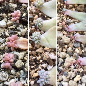 【多肉植物の葉挿し】 3ヶ月経過記録✏️(2/27〜) 左から ブロンズ姫、シロボタン、アプス ブロンズ姫とシロボタンは 更に一回り大きくなったなー👀🎶 遅れてたアプスもほぼ100% 根や芽🌱が出ています😊❗️ そろそろ親株の周りに一緒に植えてもいいかな😆⁉️