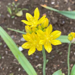 今朝の庭 アリウム モーリー 草丈 20cm 小さな6片花を10ヶ程付け一つの花のよう 花言葉 深い悲しみ