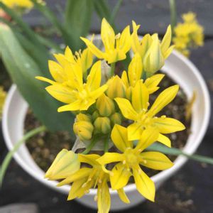 おはようございます🤗 このお花名前分かりました。 Googleのレンズというアプリがとても便利です!お花も検索してくれます(*゚▽゚)ノ アリウム モーリー 😊 和名 黄花の行者にんにく だそうです。