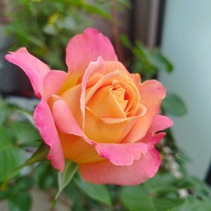 おはようございます☀ 朝からムシムシ💦 外はシュワシュワシュワシュワ!クマゼミの声💦 夏ですね〜😆 昨日、蕾だった薔薇タヒチが咲いていました🌹 今回は黄色も淡く入ったオレンジ✨✨✨ 毎回、雰囲気の違う色合いを見せてくれます💕 (🏷薔薇タヒチで今までの色合いが見れます🌹) 香りも最高👍👍👍 春に迎えた薔薇だけど、グングン背丈を伸ばして蕾をつけてくれます🌿 そろそろ一度剪定したほうかいいのかな〜? 蕾つけてくれるからついつい咲かせてしまう…😅
