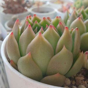 「ミトス」 Mytoth ベンケイソウ科 エケベリア属 みどり色のラメが夕陽に照らされてキラキラしてます。✴️