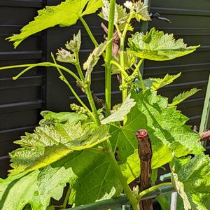 そろそろかなぁ〜と、🍇を除いて見ました。 これってちょっと変ですよね😓 ブルームでは無さそうな気がします。 もっと酷いのもありました。 きっと病気かも😭🍇🍇🍇 今年は立派な房が実ったと楽しみにしていたのに😓