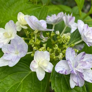 アジサイ 衣純千織☺️ 開き始めは、ほぼ白でしたが少しずつ紫が出てきました。