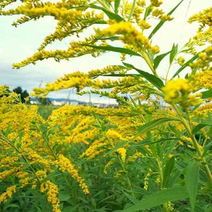 道路沿いに咲く、セイタカアワダチソウ。 厄介者といったイメージですが、実はすごく使えて、薬草のようですよ。 お花はハーブとして、蕾は入浴剤になるようです。 散歩道にて。