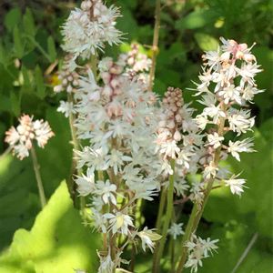 ユキザサとテァアレア🌸🌿 (雪笹) 雪笹の由来は、笹の様な葉と雪の様な白花から。 育てて長いですが、少しづつながら増えています🎶 この子ティアレアは昨年友達から貰った子です🌸 お迎えした子もいますが、まだ咲き始めたばかり。 開花期間も長くて、とても可愛らしいお花が大好きです♡♡